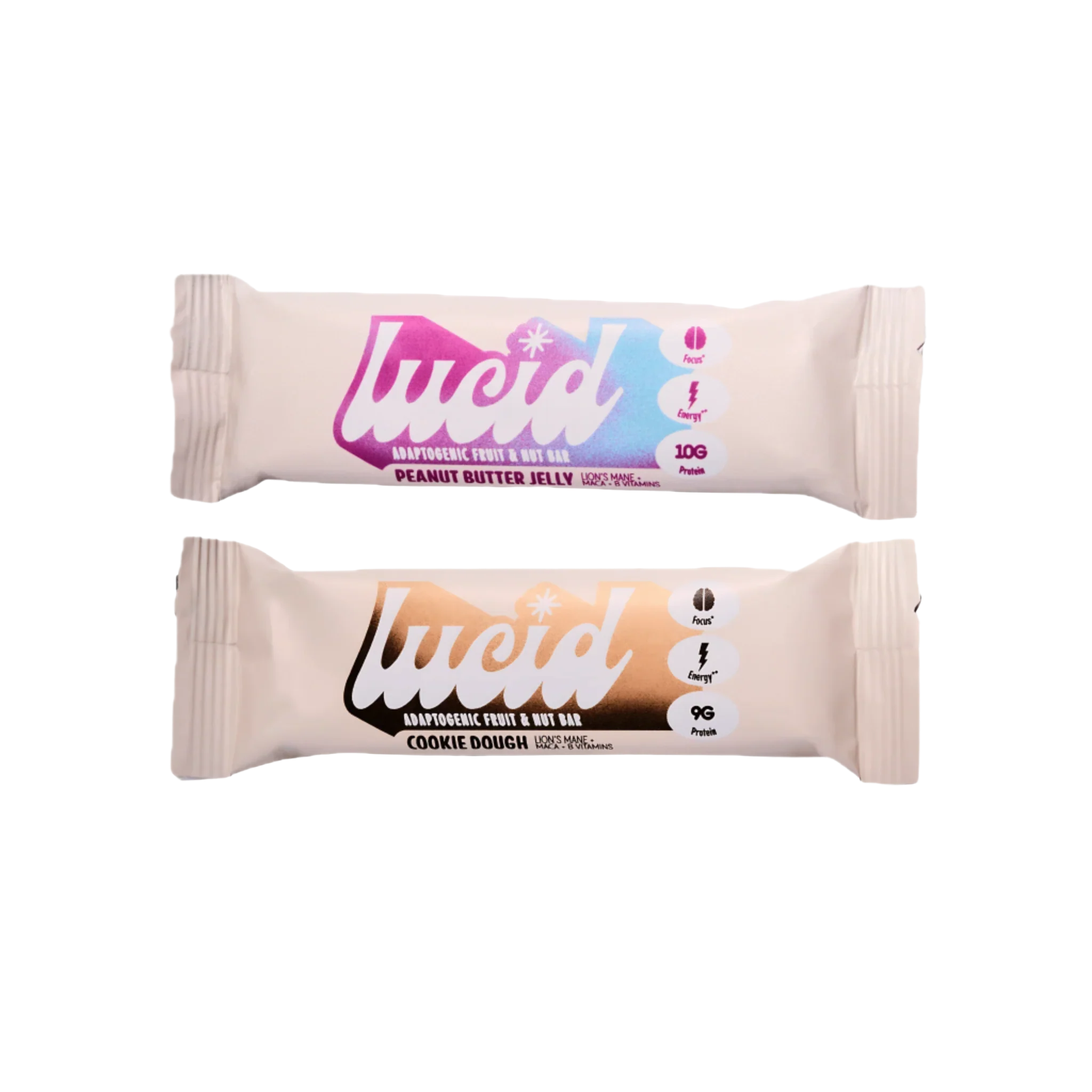 Get more out of your snacking experience with Lucid's rich and flavourful snack bar sampler that caters to your health and well-being. Re-energise your mind and body with the delicious Move bars in two flavours: PB&J and Cookie Dough. Both contain non-psychoactive Lion's Mane functional mushrooms, Maca, and a mix of B Vitamins to help you feel focused and energised. High in prebiotic fibre from Chicory Root and Dates and free from added sugar, Lucid bars are a perfect balance of indulgence and nourishment.