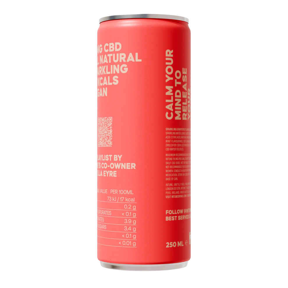 Grapefruit & Mint CBD drink is zesty and refreshing, whether you're pairing it with a meal or adding a splash to your evening cocktail for a twist. This sparkling delight artfully marries the tart punch of grapefruit with the soothing whispers of mint, while the subtle undertones of quince and passion fruit dance on your palate. Each can has 10mg CBD, designed to deliver a revitalising experience that's just right, any time of the day.