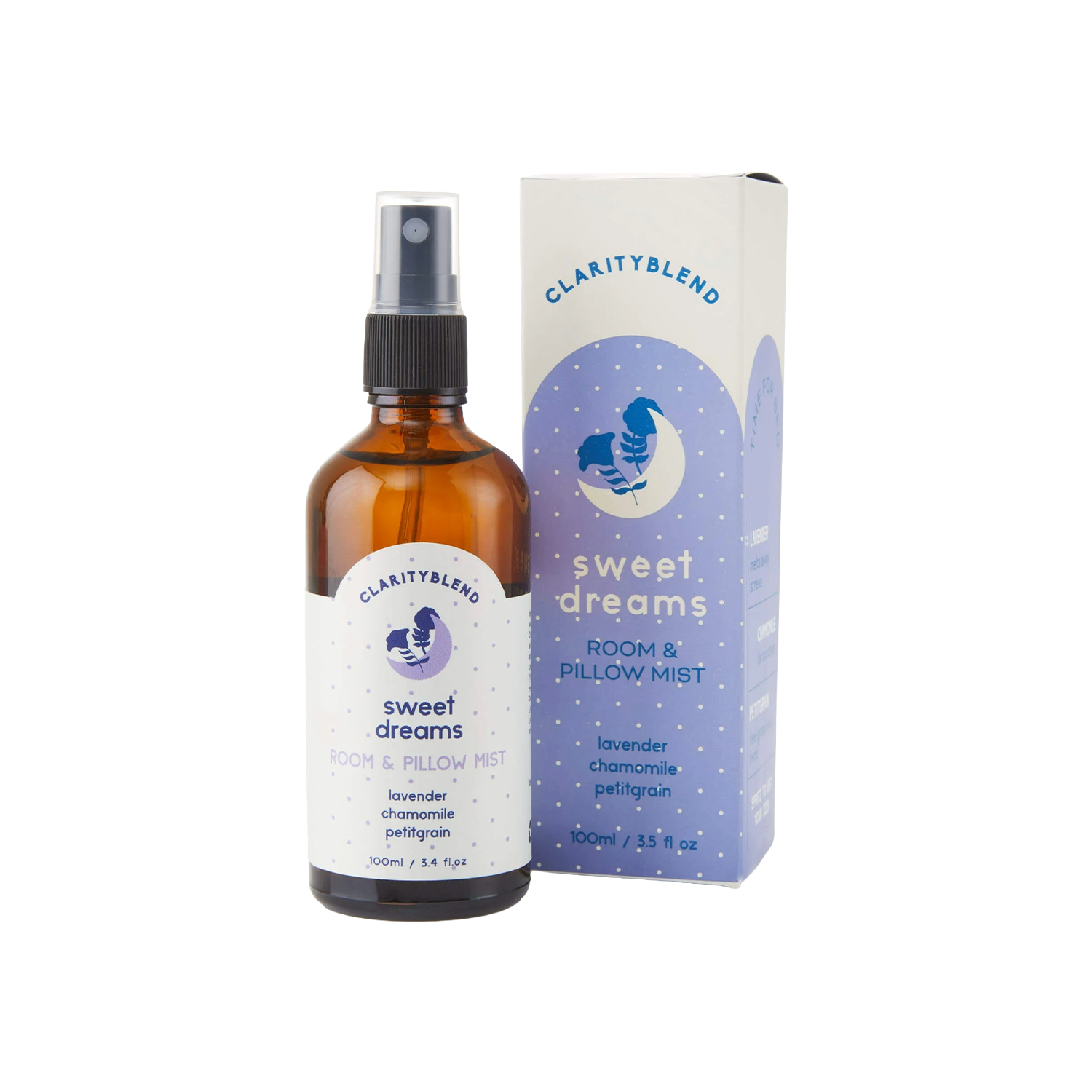 Sweet Dreams pillow and room mist is a soothing blend of lavender, chamomile and petitgrain to help calm a busy mind and help you drift off. The tranquil pillow & room mist with natural essential oils holds the key to a restful night, leaving you feeling refreshed and restored.