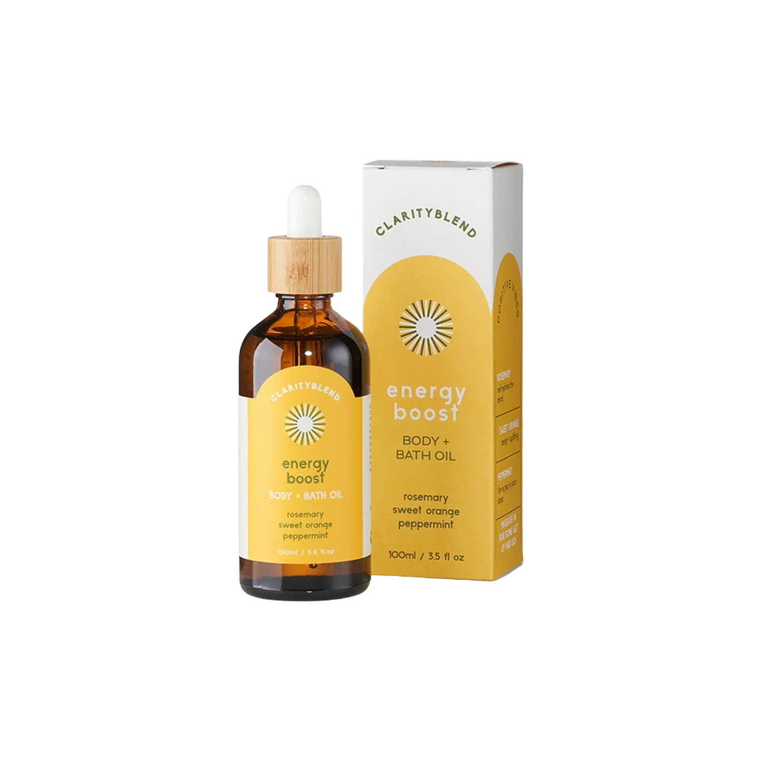 Energy Boost Body and Bath Oil is here to brighten and revitalise your day. The perfect combination of uplifting essential oils with natural Jojoba and Almond oils work together to nourish the skin and lighten your mood. Rosemary invigorates the mind while Sweet Orange’s bright, fruity scent gives a boost to keep you going. Peppermint joins the mix to give an intense refreshment with its minty, sharp aroma - perfect for ridding tension and clearing your head. All in all, a powerful fusion to lift the spirits and give you that get-up-and-go vibe!