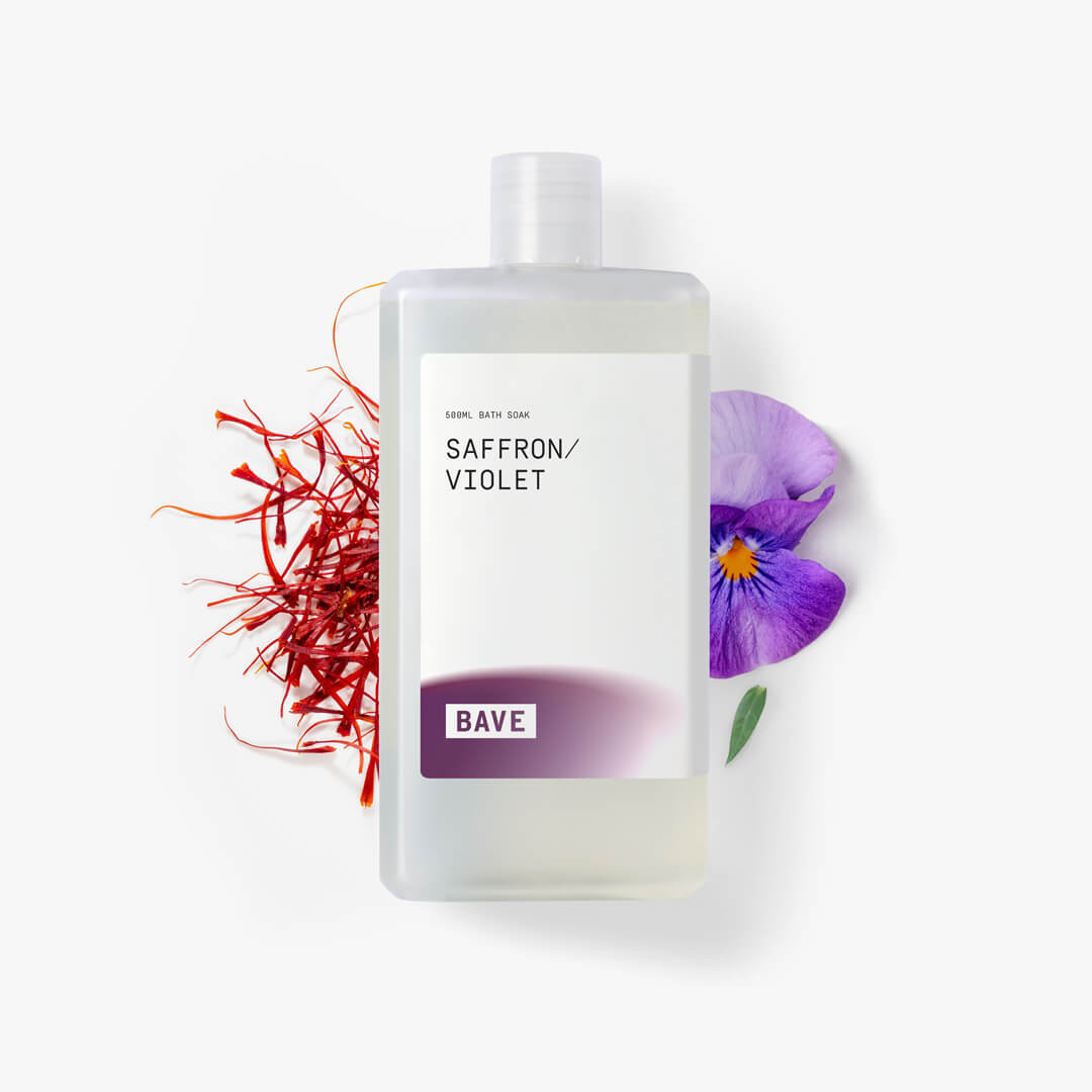 BAVE bath soaks are specially formulated to provide an unmatched pampering session for your body and mind. The luxurious notes of saffron mingle with the light scent of violet, creating a symphony of aromas that is both brightening and calming.