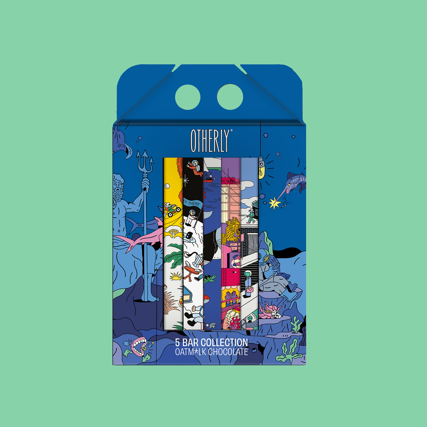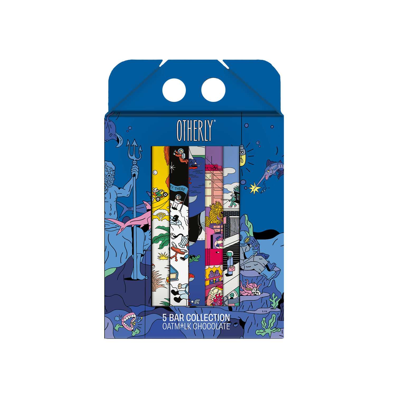 Explore the OTHERLY side with our 5 Bar Collection Box featuring the selection of our plant based range of oatm*lk chocolates like Original Plain, Sea Salt, Salted Caramel, Cherry, and Cold Brew Coffee. Our oatm*lk chocolate, with 43% cacao offers exceptional roasted cacao notes and distinctive sweetness, that enhances the delicate and authentic biscuity and cereal notes of oats.