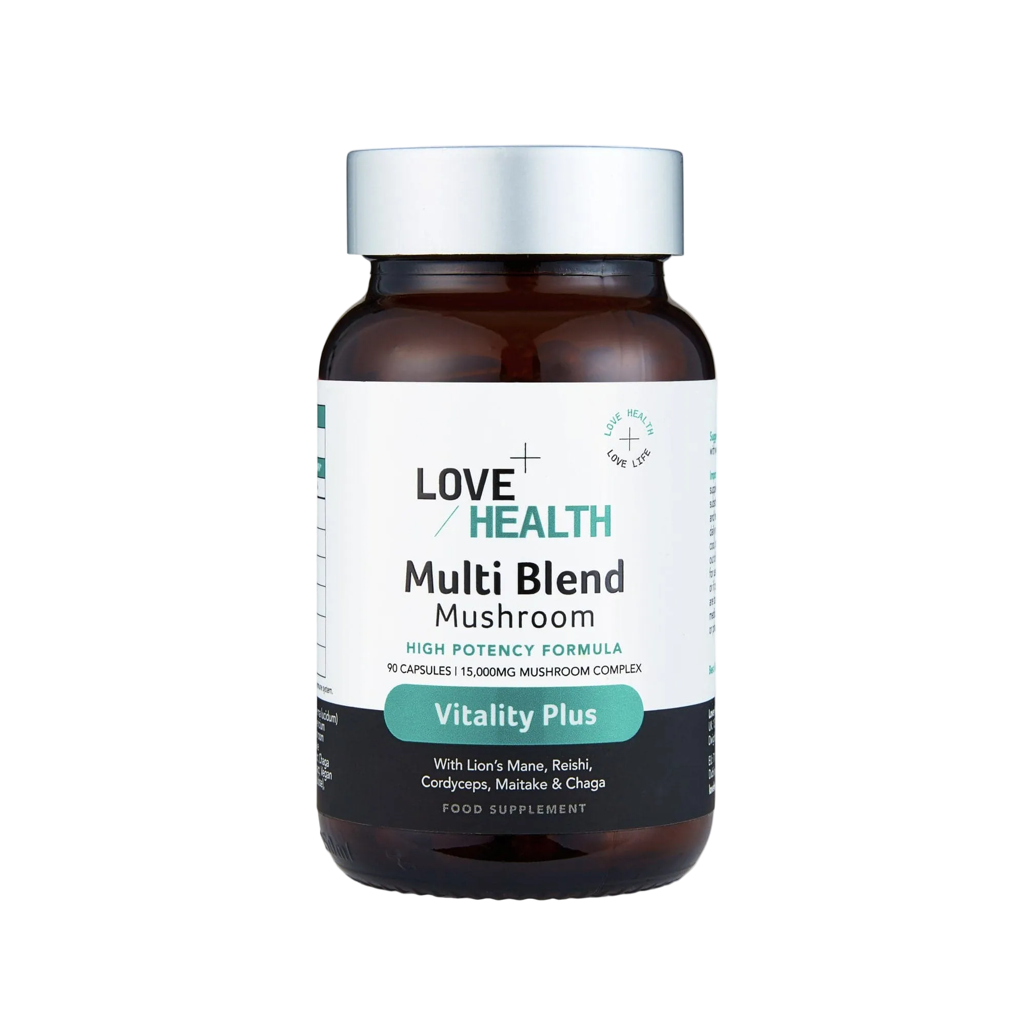 Experience the power of 5 adaptogenic mushrooms in one capsule with the Multi-Mushroom Capsules for overall health, containing 15,000mg mushrooms per serving. This high-strength vegan formula combines the benefits of premium log-grown Lion's Mane, Reishi, Cordyceps, Maitake, and Chaga mushrooms combined with Vitamin C for comprehensive wellness and vitality support. Ideal for busy individuals who want to stay energised and resilient in the face of life's demands.