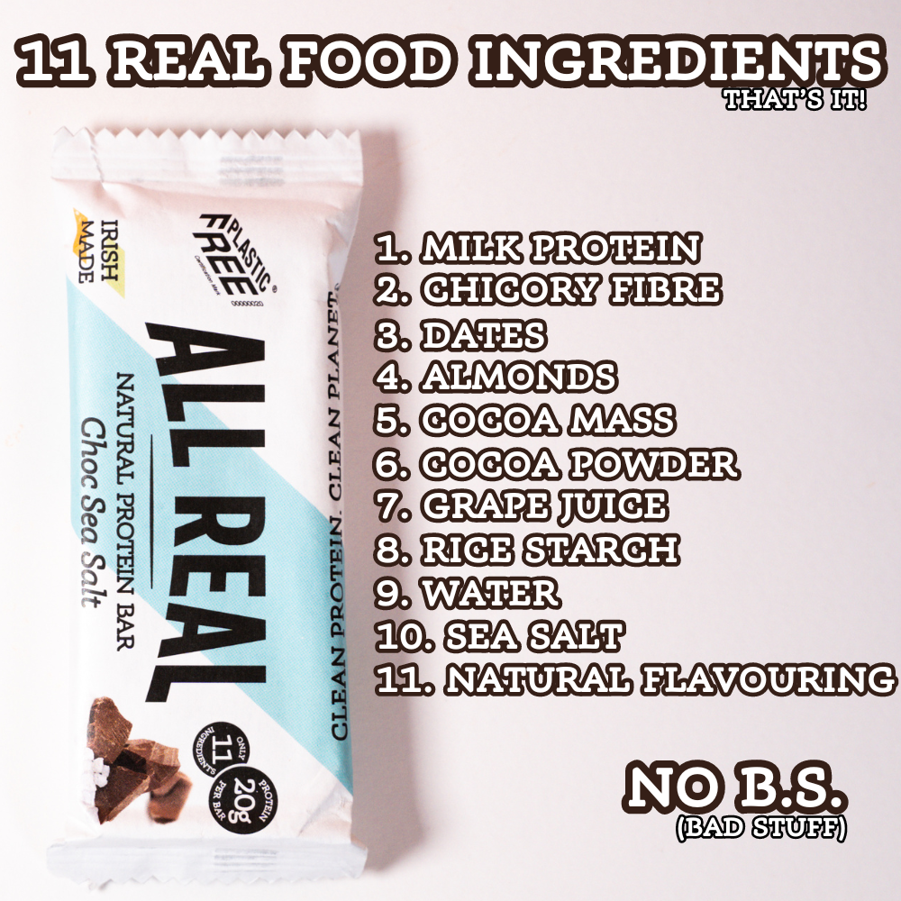 Chocolate Sea Salt Mini Protein Bars are lovingly crafted with whole almonds that are roasted and blended into a luxuriously creamy spread. The addition of premium Belgian chocolate chips and a sprinkle of Irish Sea Salt gives these bars a delightful sweet and salty flavour. Containing hearty Milk Protein, Chicory Root Fibre, and only half the sugar found in other natural brands, these bars are made with 11 all-natural ingredients, all of which are easy to pronounce. They also come in compostable wrappers, so you can indulge without any guilt!