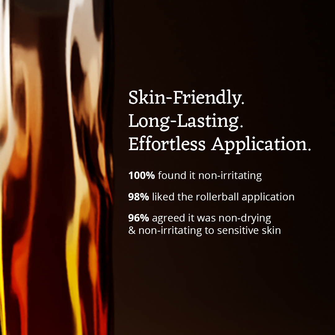 8 scents from essential oils: Pine Needle, Petitgrain, Rose Geranium, Neroli, Lemongrass, Allspice, Ylang Ylang, Cedarwood. Skin-friendly and long-lasting, the moodroller format makes application effortless.