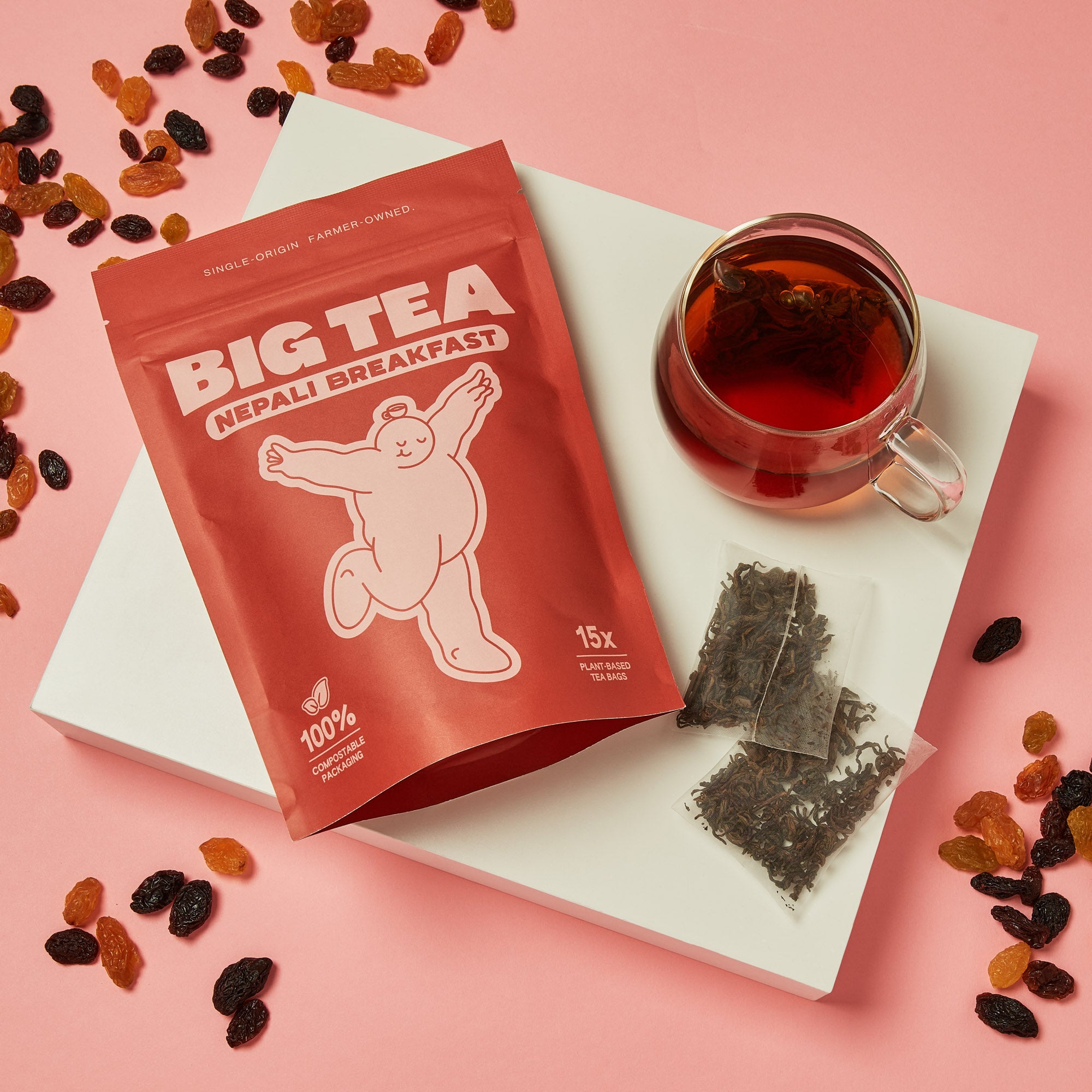 Discover this exceptional Nepali black tea, cultivated in the cool mountain foothills of sacred Mount Kanchenjunga, where slower growth concentrates remarkable depth of flavour in each leaf. Called "ruby" for its glowing red-brown brew and the rich warmth it brings, this tea comes from a cooperative established in 1984 that has transformed communities by supporting over 100 families, educating 3,500+ children, and protecting half their land as forest. Each cup delivers malty chocolate notes followed by dried fruit complexity, with a smooth, naturally sweet finish that lingers beautifully. Bold yet approachable, this is a breakfast tea with genuine character and purpose behind every leaf. Over three grams of large-cut herbs fill every plastic-free, biodegradable tea bag, delivering a robust infusion that doesn't compromise on taste.
