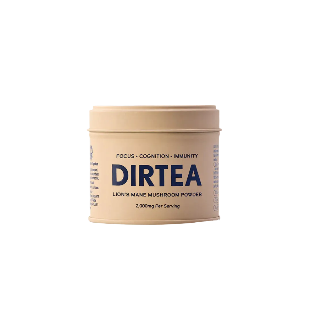 DIRTEA Lion's Mane Mushroom Powder is a supplement created to improve memory, focus, and mental clarity. Each 2g serving contains 2,000mg of Lion's Mane Extract from organic fruiting bodies, plus added Zinc to help boost the immune system. DIRTEA powders are vegan friendly and do not contain any fillers, bulking agents, sugar, or gluten.