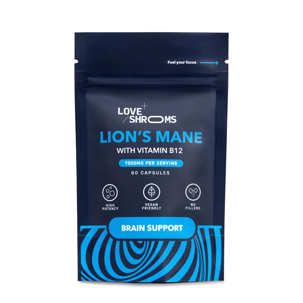 60 Vegan Capsules | Vitamin B12 & 7000mg Lion's Mane