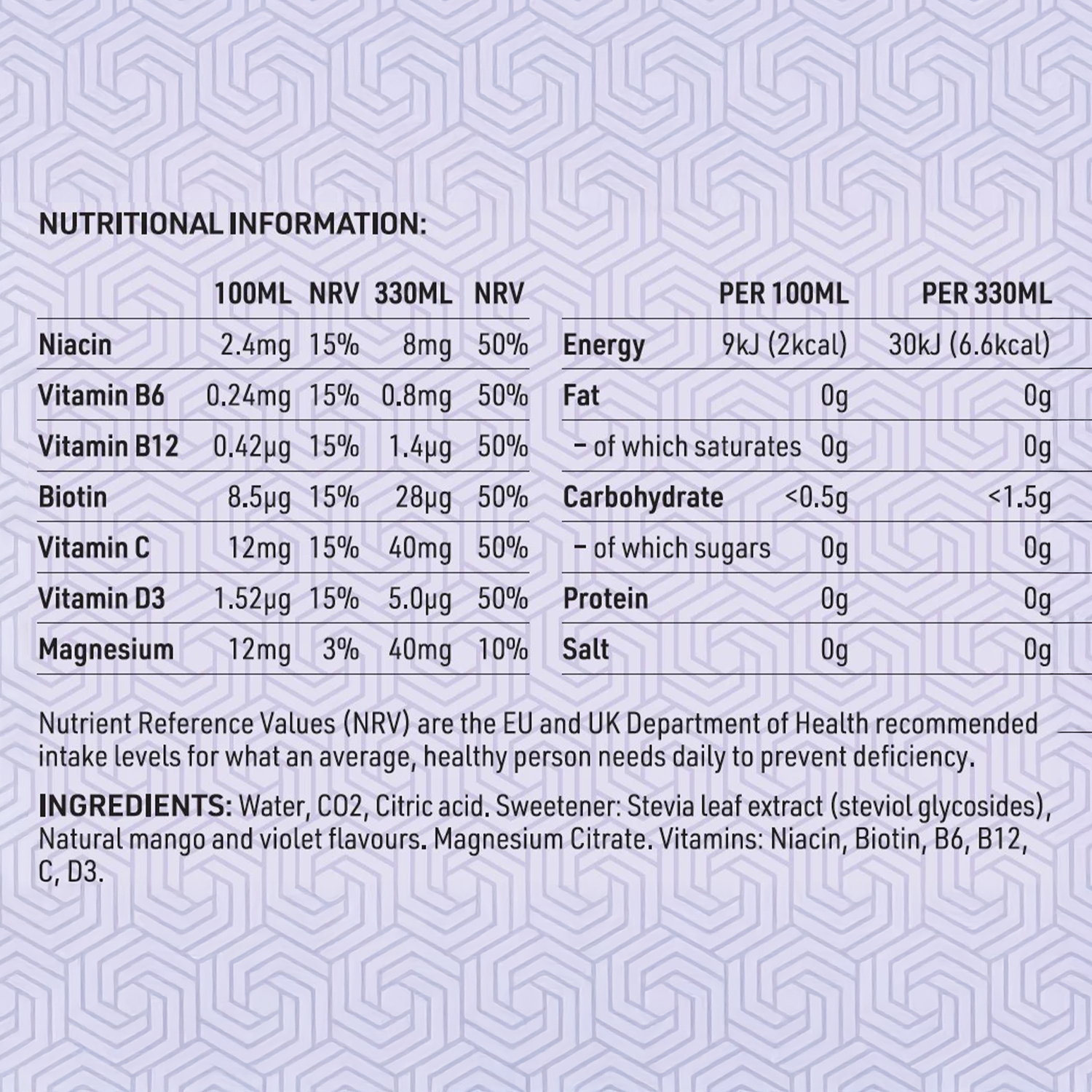 Dr Funk Vital Edition provides a healthy dose of essential mineral Magnesium plus vitamins C, D3, B6, B12, Niacin and Biotin, so you can get the daily nutrition you need while quenching your thirst. Made with delicious, natural mango and violet flavours and without any sugar, calories, preservatives, or artificial ingredients.