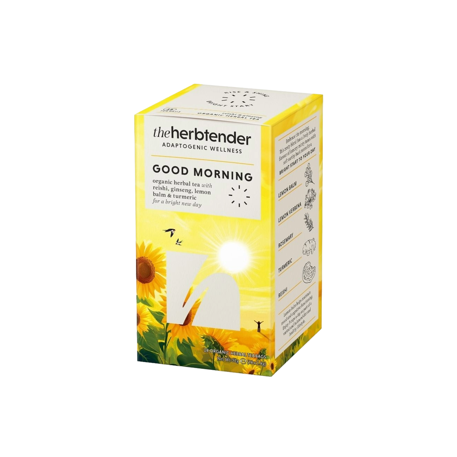 Bright and uplifting, Good Morning opens with the citrusy freshness of Lemon Balm, offering a light, uplifting start. Turmeric follows with its warm, earthy spice, adding depth and a golden richness to the blend. Ginseng brings a slightly bitter edge and subtle heat, energising the palate without overpowering. Reishi anchors the cup with a smooth, woody base note that balances the livelier elements.