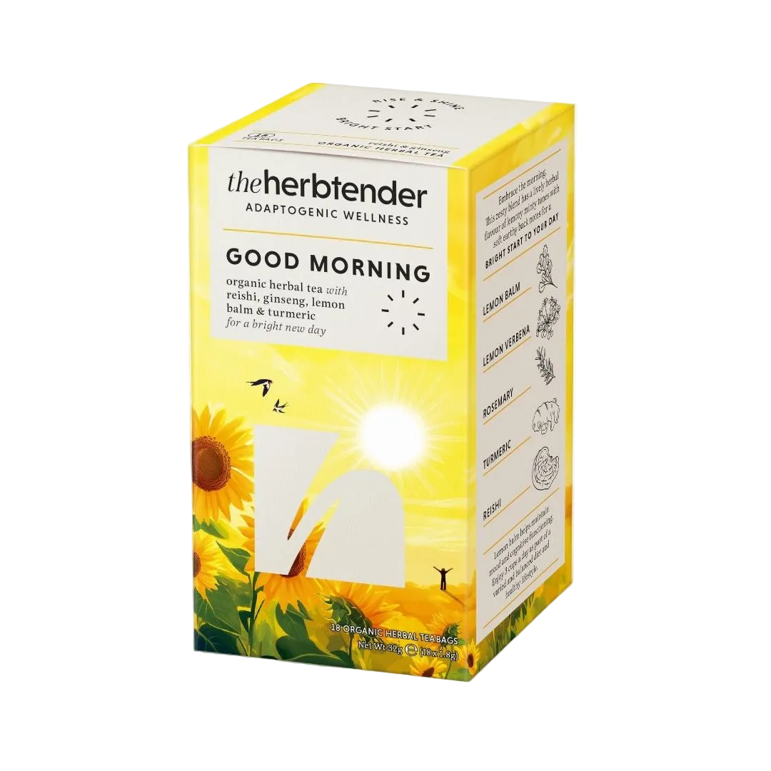Bright and uplifting, Good Morning opens with the citrusy freshness of Lemon Balm, offering a light, uplifting start. Turmeric follows with its warm, earthy spice, adding depth and a golden richness to the blend. Ginseng brings a slightly bitter edge and subtle heat, energising the palate without overpowering. Reishi anchors the cup with a smooth, woody base note that balances the livelier elements.