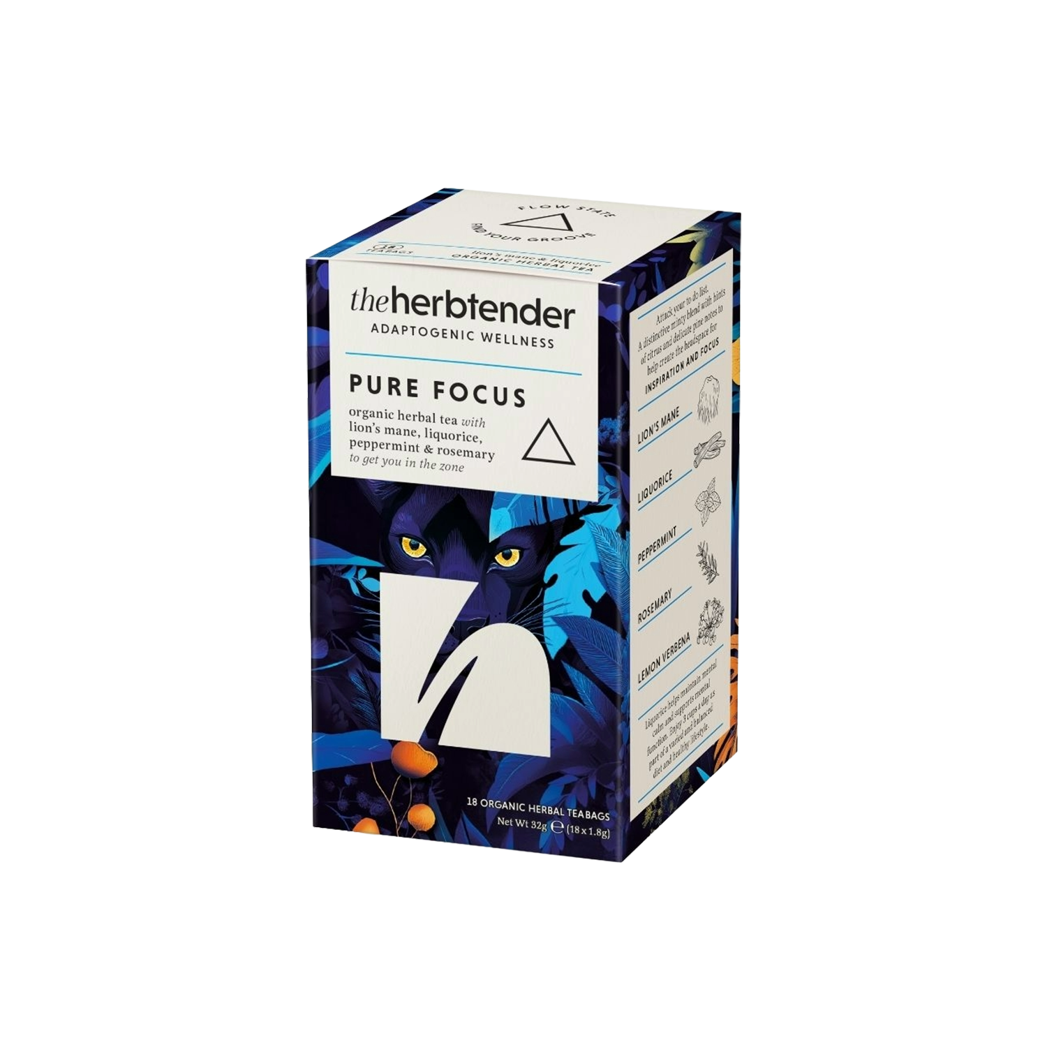 Refreshing and vibrant, Pure Focus opens with the cool, clean sharpness of peppermint, instantly awakening the palate. Rosemary follows with a savoury, pine-like note that adds depth and an herbal brightness. Liquorice brings a gentle sweetness and smooth texture, softening the edges with a subtle, lingering warmth. Lion’s Mane adds a mild earthiness, rounding out the blend with quiet depth.