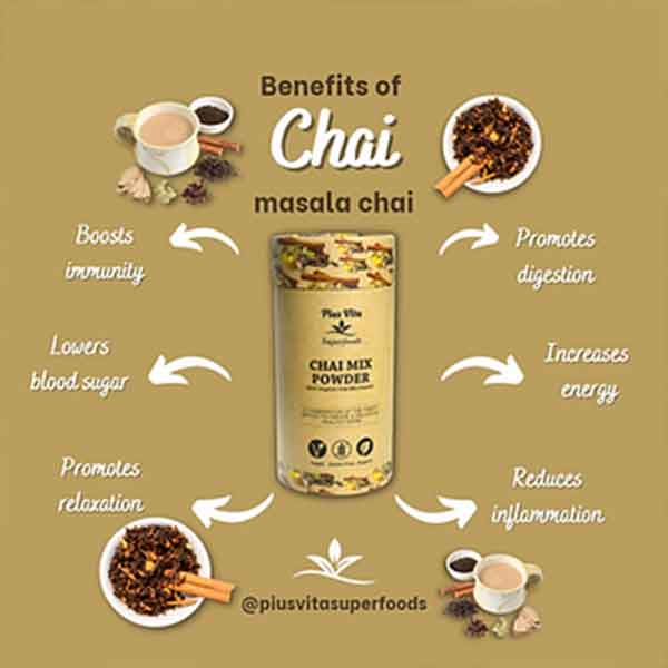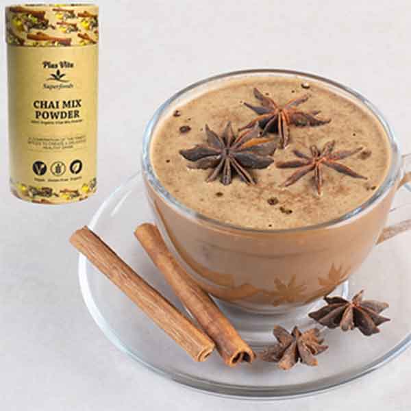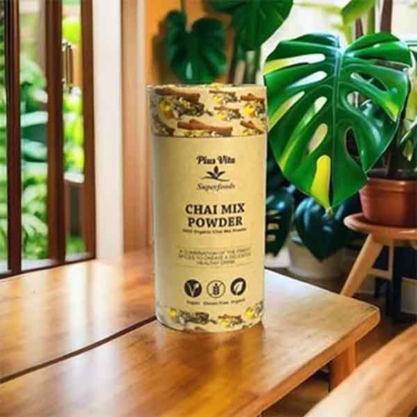 Indulge in Organic Chai Mix Powder, made with Ceylon Cinnamon, Ginger, Cardamom, Cloves, and Nutmeg. This enticing blend of spices creates a warming and flavourful tea that supports digestion and boosts the immune system. Experience a fusion of the finest ingredients in a delicious and nutritious drink that nourishes both the body and soul.