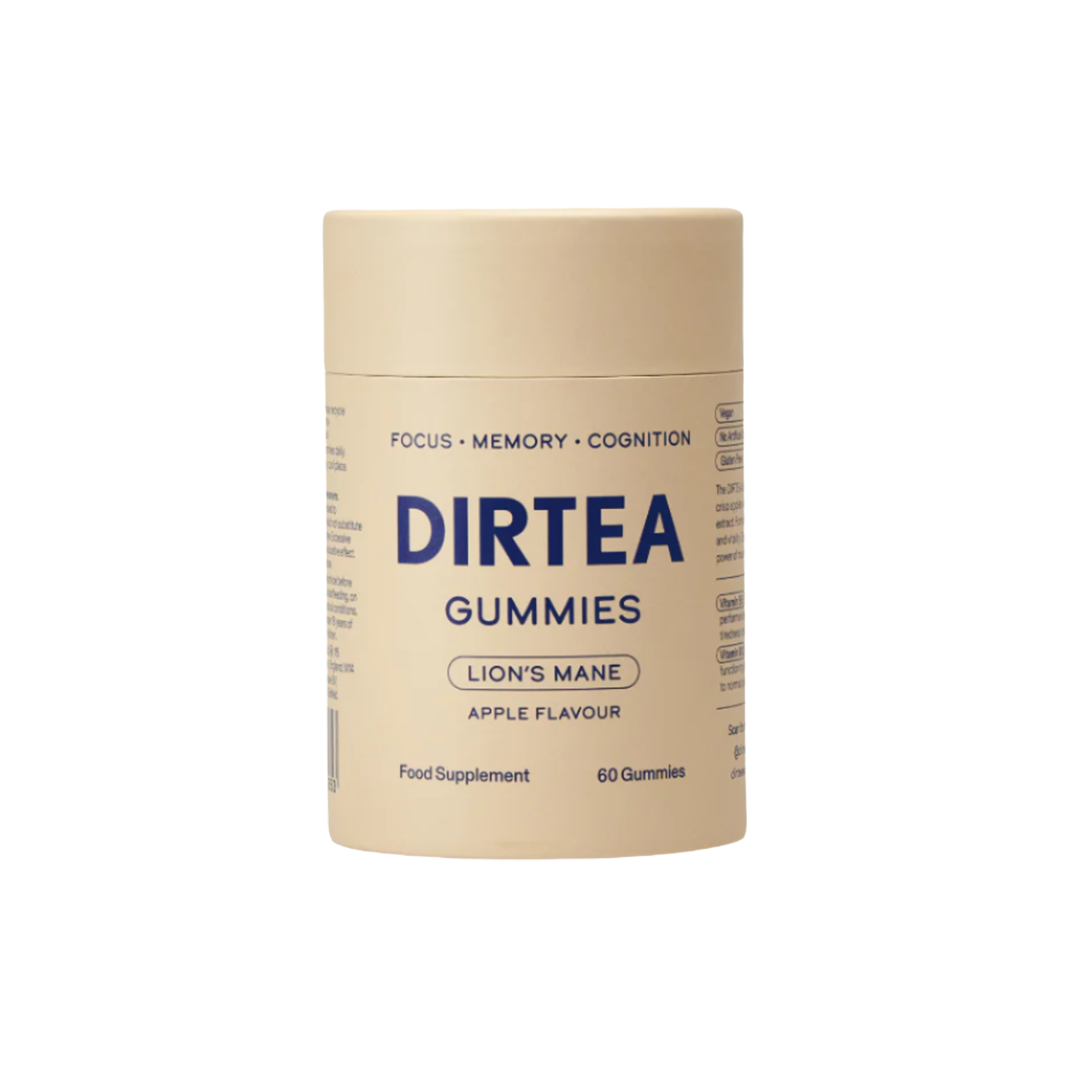 DIRTEA Lion's Mane Mushroom Gummies are a powerful cognitive enhancer created to improve memory, focus, and mental clarity. Each serving contains 2,400mg of Lion's Mane extract from 100% organic fruiting bodies, plus added Vitamins B5 and B12 to help reduce fatigue. These delicious apple flavoured gummies are vegan friendly and do not contain any fillers, bulking agents, sugar, or gluten.