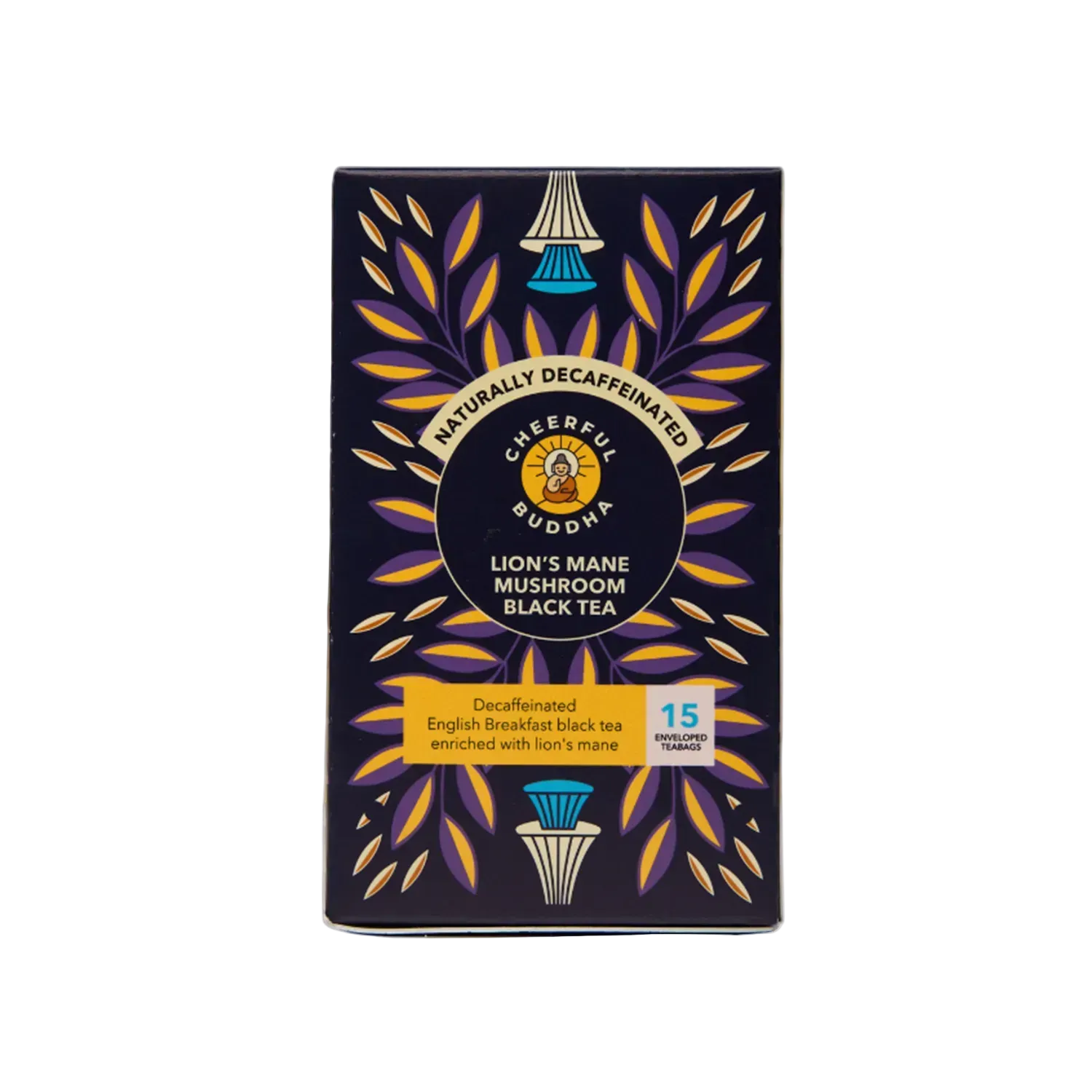 Drink Lion's Mane Mushroom Decaf Black Tea anytime you require mental clarity or a calming pause amid daily pressures. This tea is decaffeinated through a CO2 extraction process that avoids chemicals, ensuring the integrity of the blend. Unlike coffee, this antioxidant-packed tea delivers a smooth, calm energy, while Lion's Mane supports cognitive function. Conveniently packaged in individual tea bags, it’s easy to enjoy anytime.