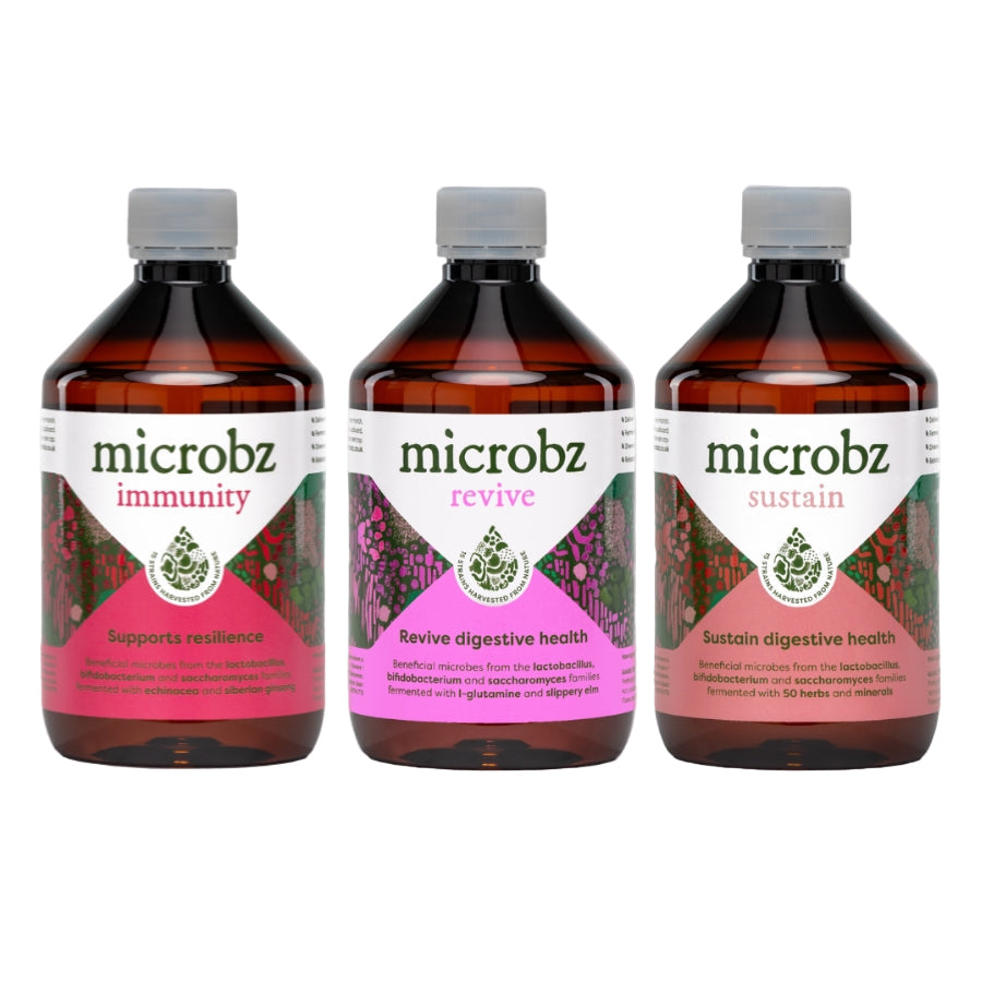 Start with Immunity, move on to Revive and finish with Sustain to nourish long-term balance. Presented in liquid form for enhanced absorption, these are brewed to a pH of 3.2 to withstand stomach acid.