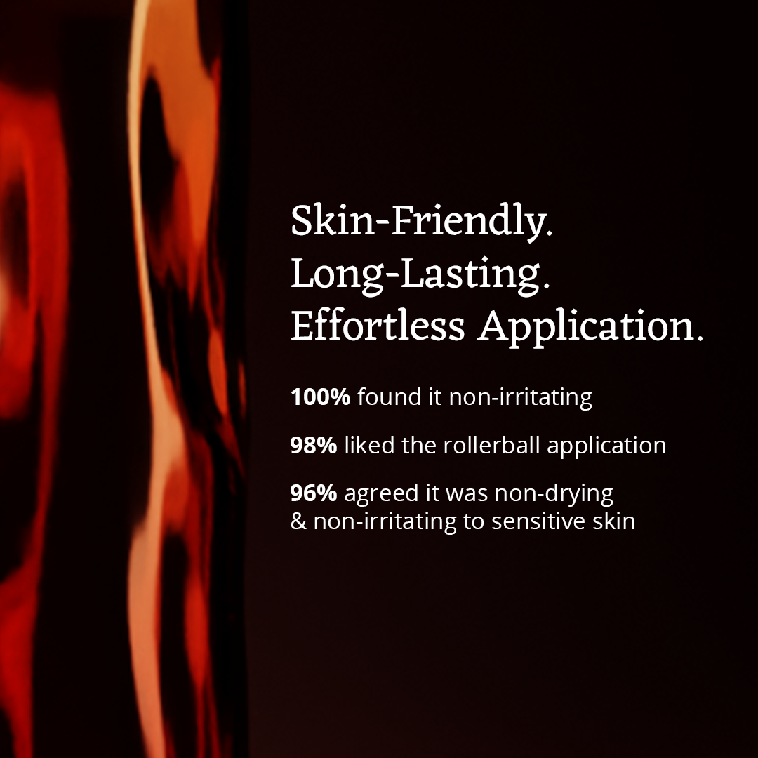 8 scents from essential oils: Pine Needle, Bergamot, Ginger, Lime, Clary Sage, Rose, Vanilla, Sweet Orange. Skin-friendly and long-lasting, the moodroller format makes application effortless.