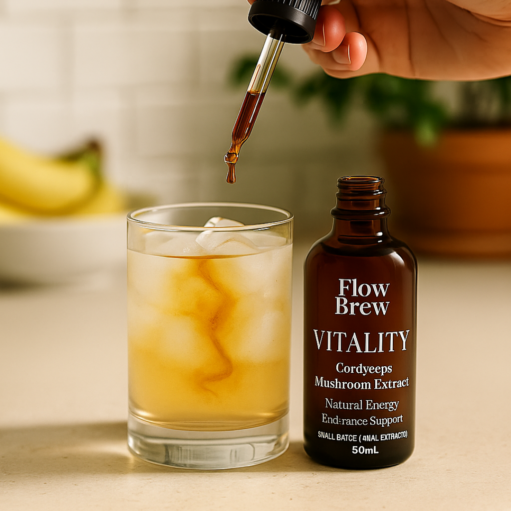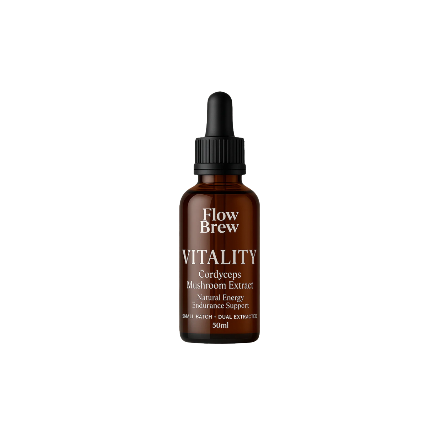 Vitality is Flow Brew’s energising tincture designed to support physical endurance and cellular oxygenation without caffeine or crash.