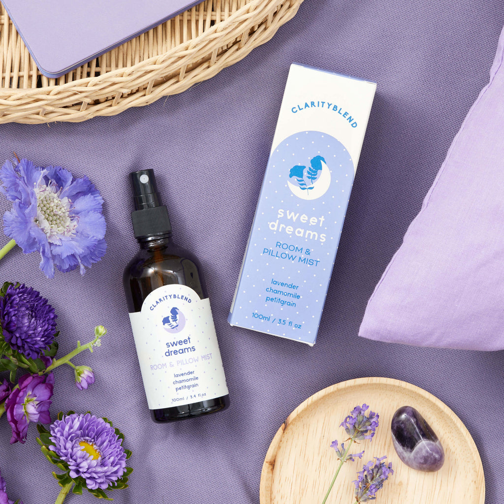 Sweet Dreams pillow and room mist is a soothing blend of lavender, chamomile and petitgrain to help calm a busy mind and help you drift off. The tranquil pillow & room mist with natural essential oils holds the key to a restful night, leaving you feeling refreshed and restored.